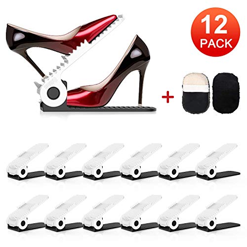 Soporte de Calzado, Organizadores de Zapatos, Soporte Ajustable de Zapatos, de PP Durable, para Ahorro de Espacio, Ayudante de Almacenamiento de Zapatos, de 4 Niveles Ajustable de Altura (12 Pcs)