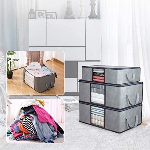 Lifewit Bolsa de Almacenamiento de Ropa de Gran Capacidad con Asa Reforzada y Tela Actualizada para Edredones, Mantas, Organizador de Transpirable con Cremallera Robusta, Gris, 3 Paquetes