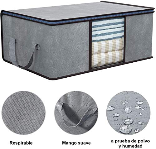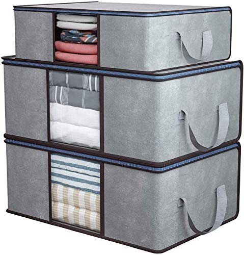 DIMJ Juego de 3 Bolsa de Almacenamiento de Ropa Gran Capacidad Bajo la Cama Organizador de Edredones con Ventana Transparente para Edredones Mantas Ropa (Gris)