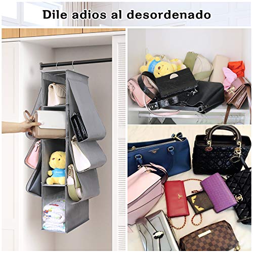 - ?[Almacenamiento Flexible]: El colgador de bolsa es extraíble. Puede colgarlo en el armario, armario y cualquier lugar con un gancho o barra. Una solución perfecta para la molestia de no tener lugar para guardar bolsos. Los bolsos se pueden almacenar en un solo lugar para facilitar el almacenamiento y el acceso. Ahorrando mucho espacio y tiempo.