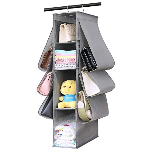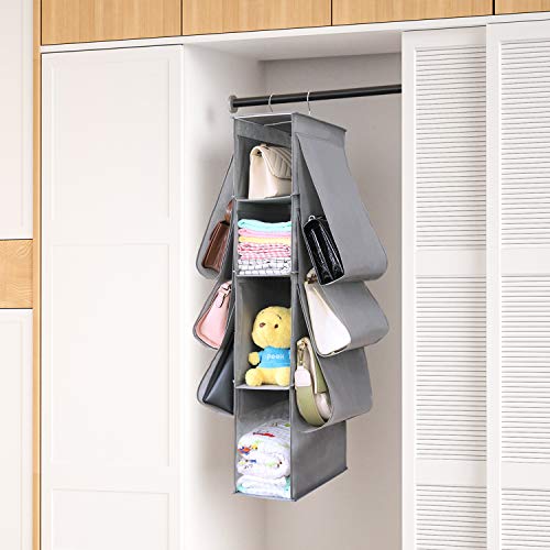 DIMJ Organizador para Armario con 10 Bolsillos, Colgador de Bolsos Plegable, Organizador de Bolsos Colgantes Multiuso con Dos Ganchos para Ropa, Bolsos, Toallas, Sombrero, Bufandas