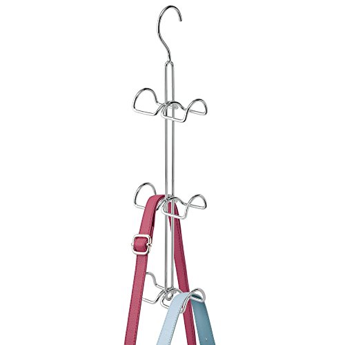 iDesign Perchas ahorra espacio para el armario, organizador de bolsos grande de metal, organizador colgante con 6 ganchos para bolsos, pañuelos u otros accesorios, plateado