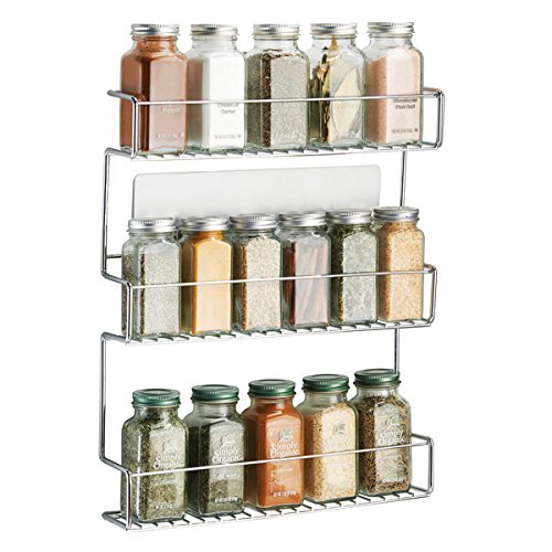- MUCHO ESPACIO: Estas estanterías para especias miden 30,1 cm de largo x 7,4 cm de ancho x 38,9 cm de alto. Tienen tres alturas para guardar condimentos y el espacio entre los estantes es de 16,5 cm.