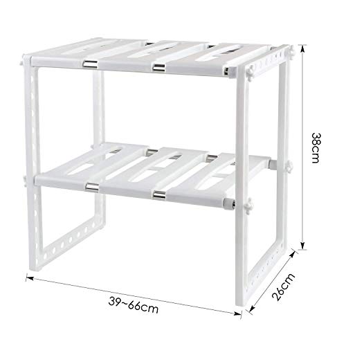 HOMFA Estantería Bajo Fregadero Multifuncional con 2 Niveles Almacenaje de Cocina bajo Fregadero de Acero Inoxidable y Plástico Tamaño Ajustable 39-66 x 26 x 38 cm