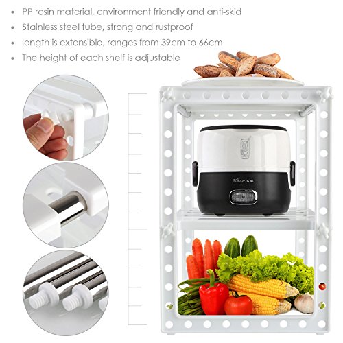 - ESTANTES DE MULTIFUNCIÓN: Es ideal para usar en la cocina pequeña, le ayuda a aprovechar el espacio mejor. Es muy conveniente almacenar y mantener los accesorios de cocina organizados, como botellas para salsa, utensilios de cocina, cubiertos. Además se puede colocar en el armario de la cocina, armario, o incluso como un zapatero.