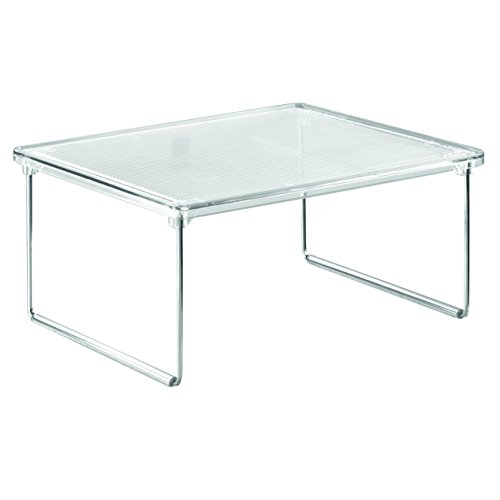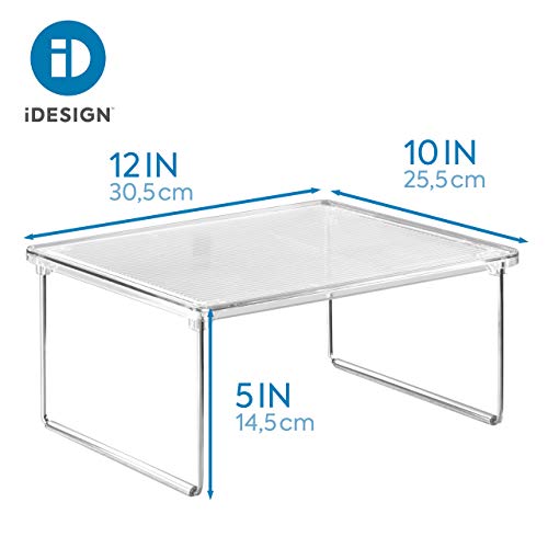 iDesign Estante adicional para la cocina, pequeño organizador de armario de plástico y metal, estante de cocina apilable para vajilla, alimentos o especias, transparente y plateado