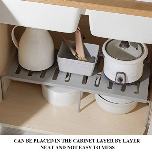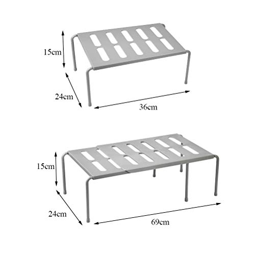 - 【Longitud ajustable】 El organizador de estantes de cocina, almacenamiento expandible, tiene una longitud ajustable que se extiende de 36 cm a 69 cm para adaptarse a todos los tamaños de armarios.