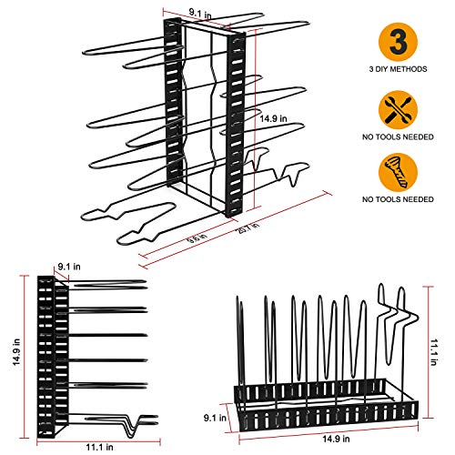 - Fácil de montar en 3 métodos: el organizador de tapa de maceta tiene 3 métodos de bricolaje. Puede instalar 8 niveles en un lado del estante de la cacerola o instalar 4 niveles en ambos lados del estante de la cacerola. Este organizador de armario viene con todos los accesorios e instrucciones necesarios. Puede iniciar la instalación una vez que haya recibido el artículo.