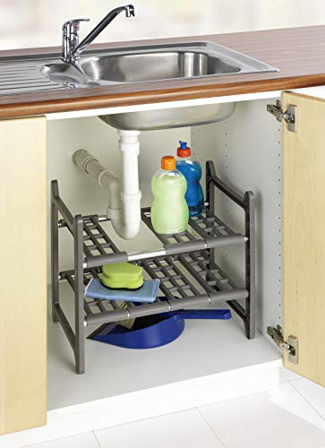 Wenko 2768010100 - Estantería para armario de fregadero (distribución ajustable, 44-82 x 39 x 28 cm), aluminio y plástico