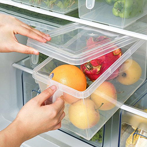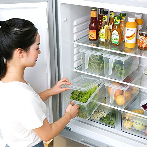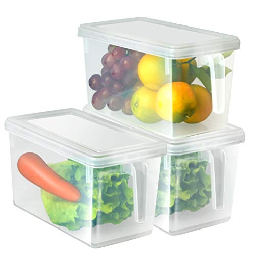 HapiLeap Organizador de Alimentos para Cocina/Congelador, contenedor Transparente con Tapa y Asa (3 Pack)