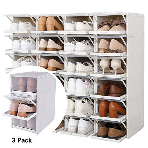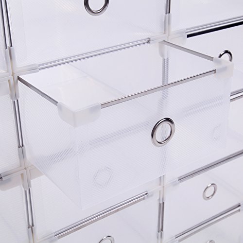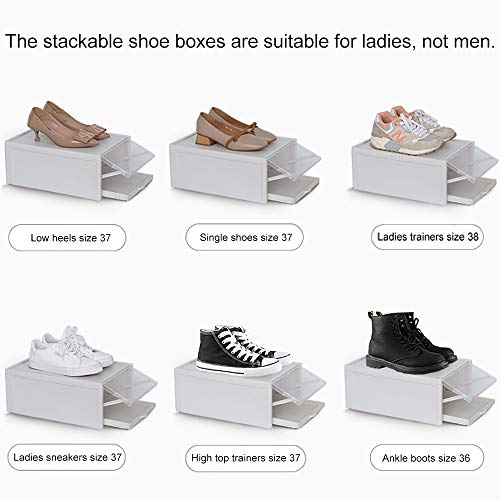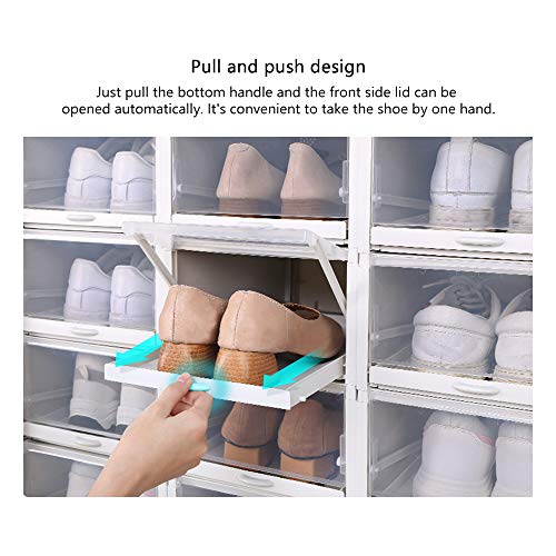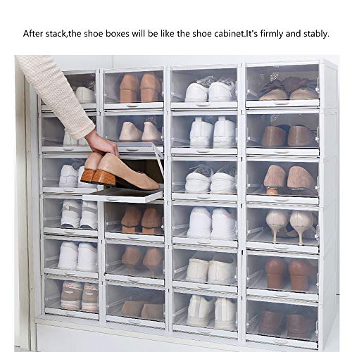 - 【Di Adiós al Desorden】 Amzdeal cajas de zapatos plásticas pueden organizar sus zapatos de manera ordenada, haciendo que su habitación se vea más limpia y decente. Como cada caja de zapatos es independiente, se puede combinar y apilar libremente, luego se puede colocar en el balcón, en el trastero, debajo de la cama o en el armario.
