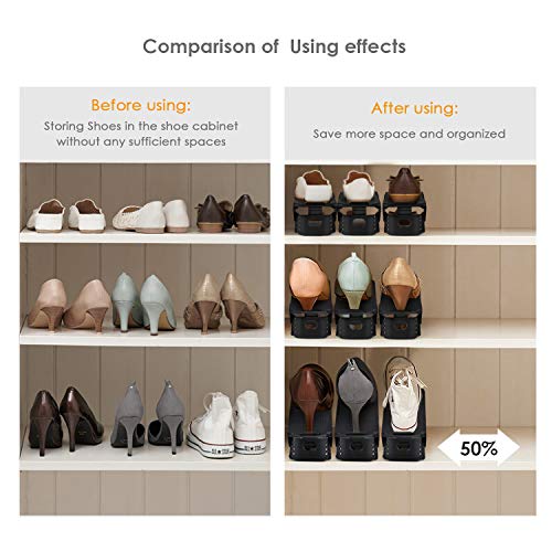 - Maximiza el espacio de almacenamiento - Puede apilar los zapatos por pares en el estante para duplicar el espacio de almacenamiento de los zapatos. Es una solución óptima de ahorro de espacio para sus zapatos en el zapatero, el armario para zapatos y el guardarropa