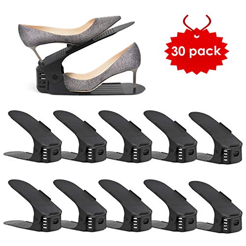 amzdeal - 30pcs Organizadores de Zapatos Ajustables Soportes de Calzado con Ranuras Ahorra 50% de Espacio PP 3 Niveles Altura para Calzado Deportivo Tacones Altos Zapatos Planos