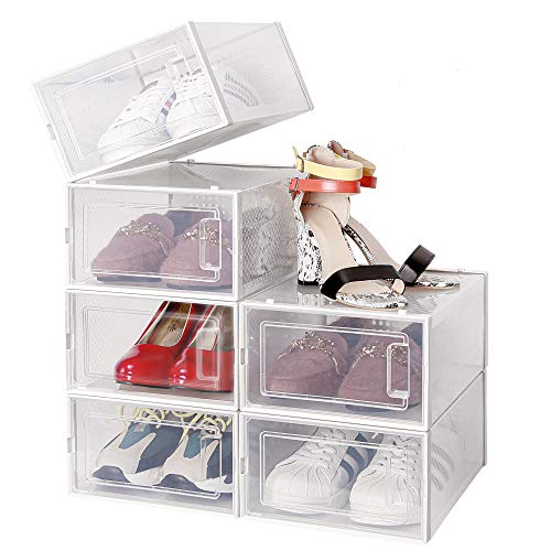 Amzdeal Cajas de Zapatos Plásticas 6 Pcs - Organizador de Zapatos Duradero y Apilable, 100% Impermeable, Caja de Almacenamiento Plegable, Más Ordenado, para Zapatos de Hombres y Mujeres 35*25*18.7cm