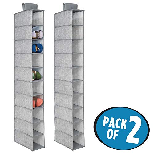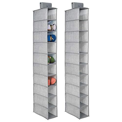 mDesign Juego de 2 muebles zapateros para colgar – Organizador de zapatos para armario con 10 compartimentos - Estanterías para zapatos, bolsos o carteras – Color gris