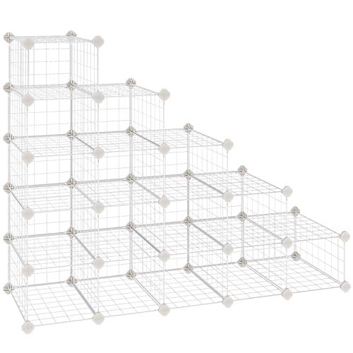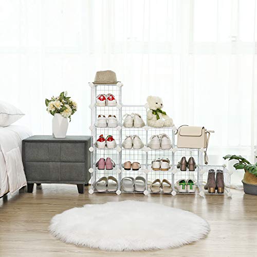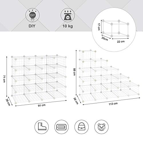 SONGMICS Estantería de Zapato, Unidad Modular de Almacenamiento de Bricolaje con 15 cubos, Organizador de Calzado con Cierre de Alambre Metálico, para Entrada, Vestíbulo, Blanco LPI44WS