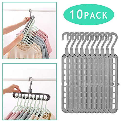 KiraKira Percha Plegable, Perchas Ahorra Espacio, Percha Multiple Plastico, Perchas para Bufandas, Perchas antideslizantesperchas estándar de 10 Paquetes con 9 Agujeros (Gris)
