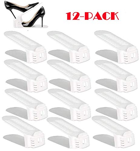 BIGLUFU Organizador de zapatos con ranuras ajustables para ahorrar espacio, color blanco (12 unidades)