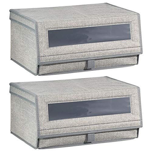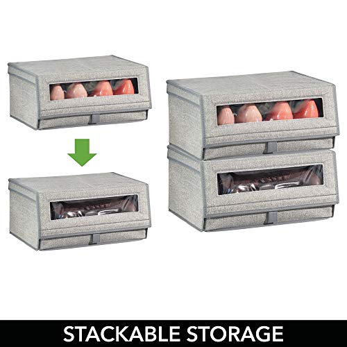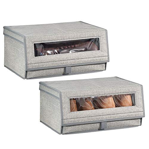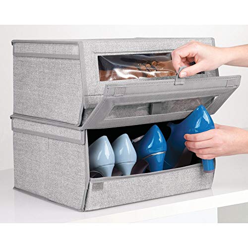 mDesign Juego de 2 cajas para zapatos de fibra sintética (grande) – Cajas apilables con ventana, cierre adhesivo y tapa abatible – Prácticas cajas organizadoras para armarios y estanterías – gris