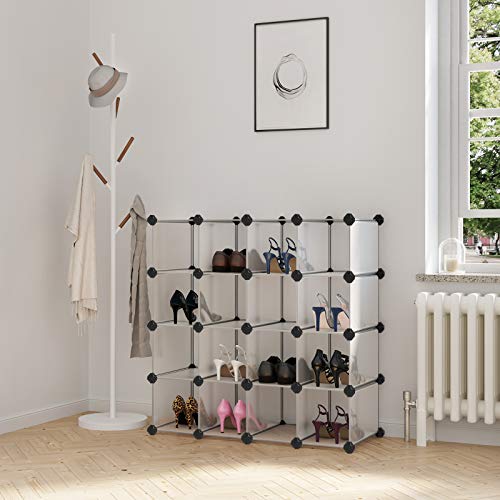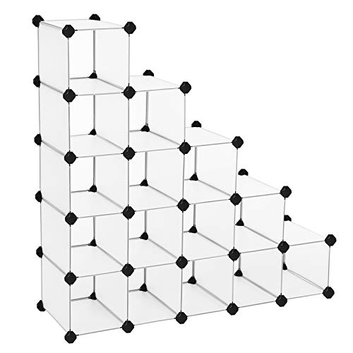SONGMICS Estantería Modular de plástico PP Zapatero Organizador 15 Cubos Blanco semitraslúcido 113 x 36 x 113 cm LPC44S