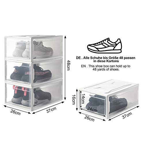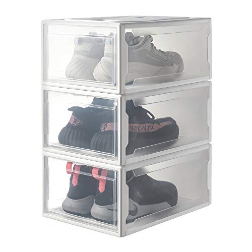 Yorbay Cajas de Zapatos apilable,Juego de 3, Transparente Ahorro de Espacio Rígida hasta la Talla 48 Reutilizable