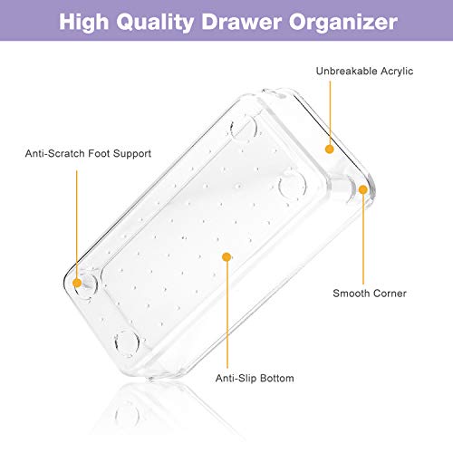 - 【Organizadores de cajones versátiles】 Encajan perfectamente en diferentes cajones, como tocadores / tocadores / baños / cocinas / cajones de oficina, perfectos para organizar cosméticos, herramientas de maquillaje, accesorios para el cabello, esmalte de uñas, joyas, pasta de dientes, cepillos para el cabello, medicamentos, cubiertos, suministros de oficina etc.