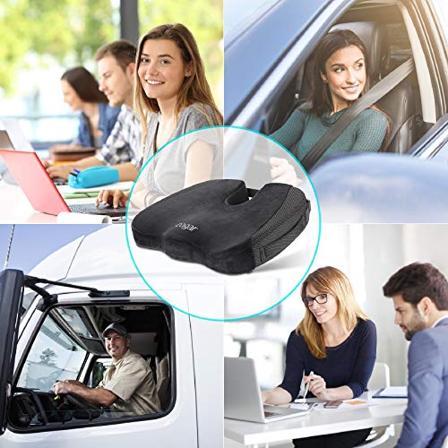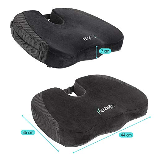 Feagar Cojin Coxis para Silla de Oficina- Cojín para Asientos del Coche, sofá, Conducir y Silla Oficina - Cojines almorranas de Espuma Memoria - Alivio de Espalda y la Ciática, Negro