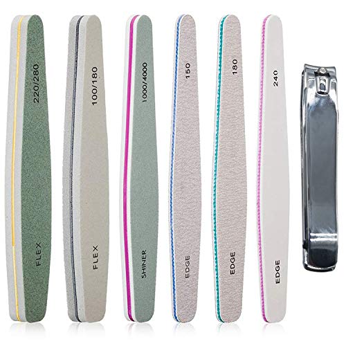 CESFONJER Kit de limas de uñas de doble cara (6 piezas) 150/180/200/240/280/1000/4000 y (1 pieza de tijeras de uñas de metal), set de pedicura de manicura cosmética para el cuidado de las uñas.