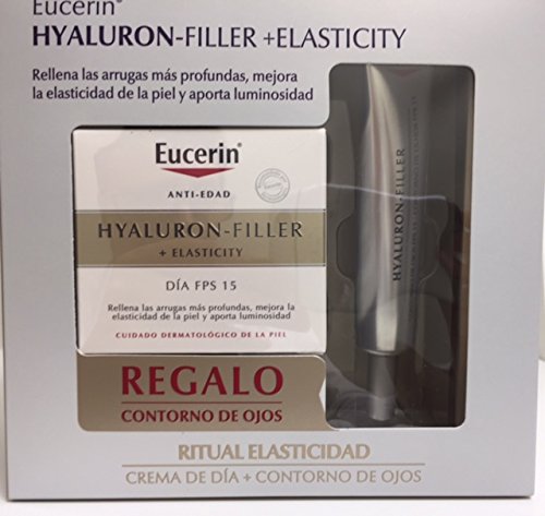 Eucerin Hyaluron Filler Anti Edad - Pack de Crema de Día FPS 15 y Contorno de ojos, 50 + 15 ml