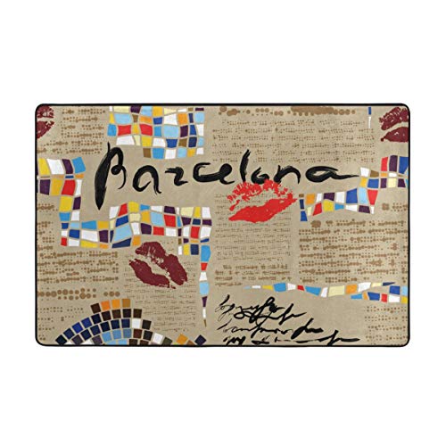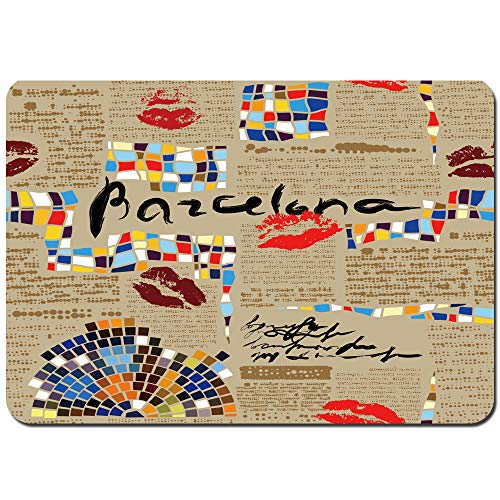 KATERN Alfombra Antideslizante de Baño,Imitación De Periódico Barcelona con Mosaicos Y Labios,Súper Suave Multiuso Lavable a Máquina75x45cm