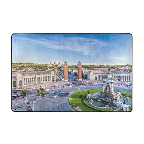 KATERN Alfombra Antideslizante de Baño,Vista de la Ciudad del Centro de Barcelona España Panorama Bus Catedral Fuente Viajes,Súper Suave Multiuso Lavable a Máquina75x45cm