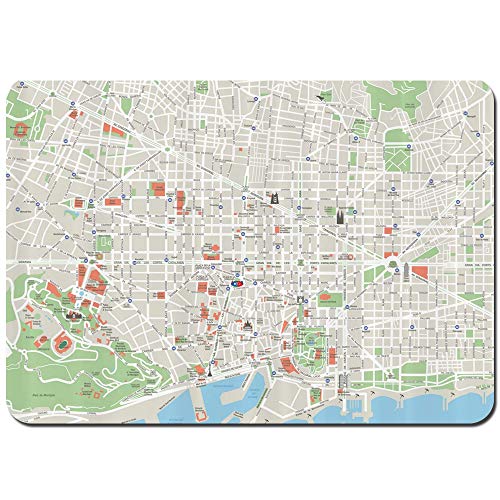 YANAIX Alfombra de Baño,Mapa de Las Calles de la Ciudad de Barcelona Parques Subdistritos Puntos de interés,Súper Suave Multiuso Lavable a Máquina75x45cm