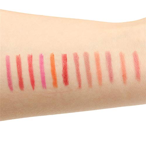 - El juego de lápices de labios de 12 colores contiene 12 colores abundantes que nunca se repiten, como el nude, marrón, púrpura, rojo rosado, rojo, naranja, vino, etc. El lápiz de labios es suave y suave, fácil de dibujar delineador de labios claro.
