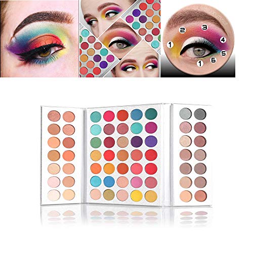 - Alto contenido de pigmentos, terciopelo y suave Una paleta de maquillaje de belleza exquisita con 63 altamente pigmento. cremosa estupendo, aterciopelada y suave, fácil de la capa y se mezclan para un acabado impecable ve. Siempre que puede traer aspecto creativo diferente en diferentes ocasiones. Nuestras sombras de ultra-pigmentada en polvo pueden crear cualquier mirada sensual que inspirará un montón de miradas de celos.
