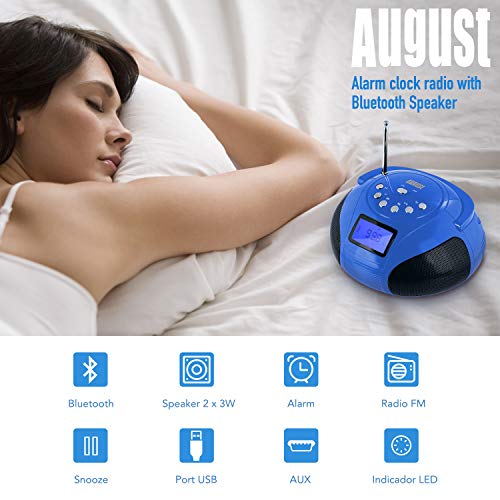 Mini Reproductor Bluetooth Inalámbrico 2 x 3W Hi-Fi August SE20 Radio FM Alarma Despertador con Lector USB SD Entrada AUX