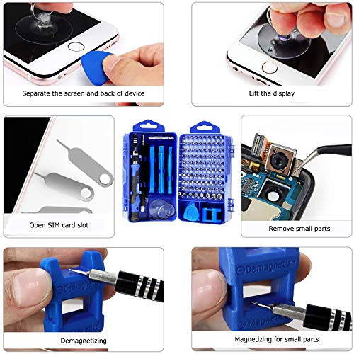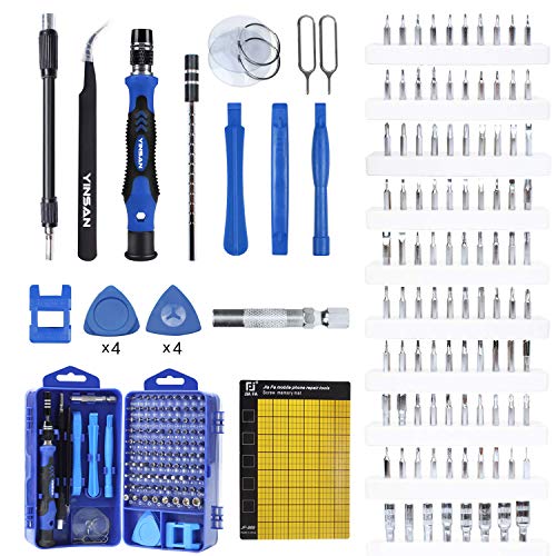 - ★120 en 1 Juego de Destornilladores de Precisión: El juego de destornilladores de precisión 120 en 1 YINSAN podría usarse en la reparación común de electrodomésticos, como televisores, aires acondicionados, ventiladores, refrigeradores, automóviles, etc. También es una necesidad en el desmontaje y mantenimiento de teléfonos móviles, cámaras digitales, relojes, anteojos, computadoras portátiles, computadoras portátiles y consolas de juegos.