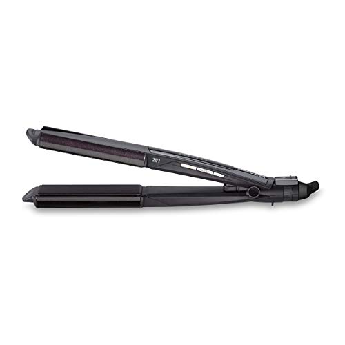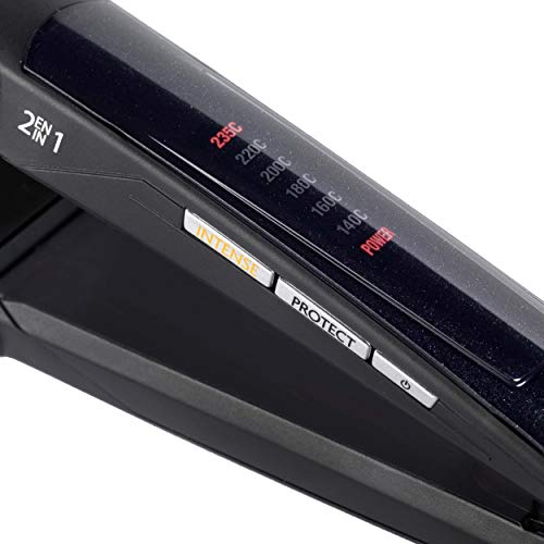 BaByliss ST330E Plancha de pelo, función I-curl para rizar, placas flotantes diamond eramic, 6 temperaturas de 140º a 235º, color negro