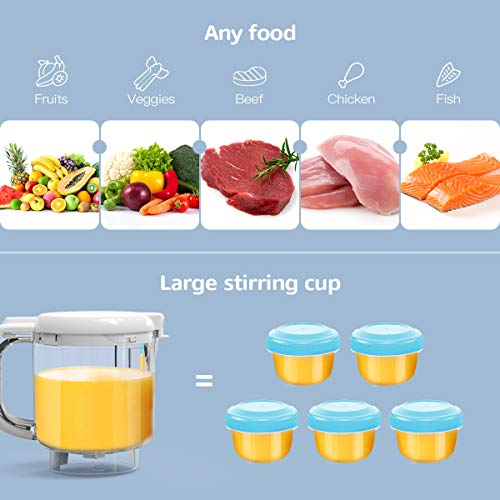 - ?【ROBOT DE COCINA MULTIFUNCIÓN】 Nuestro hervidor de alimentos para bebés delicado, compacto y fácil de usar, diseñado para que prepares alimentos para bebés saludables, sabrosos y naturales para tu bebé. Obtenga 4 funciones con una sola máquina, puede cocinar al vapor, mezclar alimentos y descongelar. Gracias a la multifunción, puede preparar de forma fácil y rápida cualquier tipo de comida para bebés.