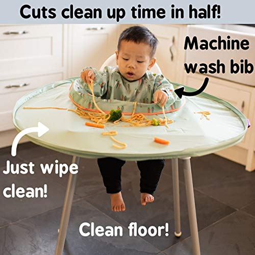 - ¡Reduce a la mitad el tiempo de limpieza! Facilísimo de limpiar: la bandeja se limpia con una toallita húmeda o en el fregadero y el babero de manga larga recogemigas en la lavadora.