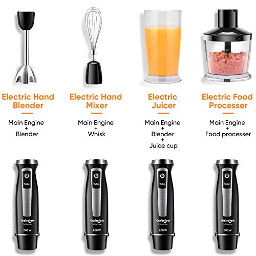 Coziselect 4 en 1 Batidora de Mano, 800W, Juego de Accesorios de 3 Partes, Adecuada para la Preparación de Papillas, Ensaladas, Sopas y Verduras, Negro
