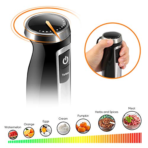 - MANGO ERGONÓMICO: El mango ergonómico con un simple botón pulsador y control de velocidad es el agitador ideal para una amplia variedad de trabajos de mezcla en la cocina, desde mezclar salsas hasta mezclar masa para pasteles, triturar frutas para batidos y más.