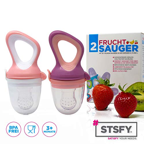- ??? TODO LE QUE EL BEBÉ NECESITA: 2 Chupetes para Frutas con un total de 3 Tetinas de Silicona suaves sin BPA en 3 Tamaños diferentes adecuados para la edad de bebés de 3 a 24 meses - ideal en el hogar y en camino.