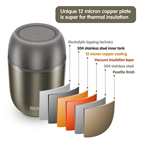 Termo Para Comida 450ml - WayEee Botella Aislada de Acero Inoxidable Aislada para Alimentos, Beber y sopa de los niños y las comidas de adultos (Gris)