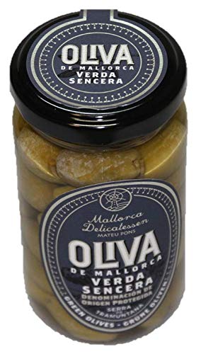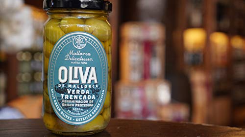 - Aceitunas de mesa de la variedad autóctona Mallorquina, se sirven después de ser fermentadas parcialmente en salmuera, aliñada con hinojo y guindilla o con Aceite de Mallorca.