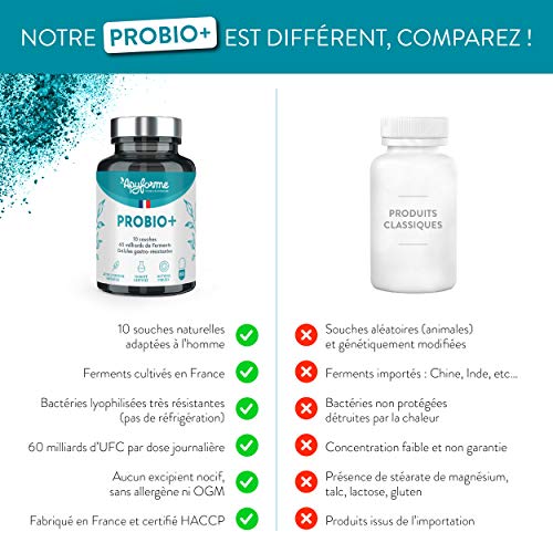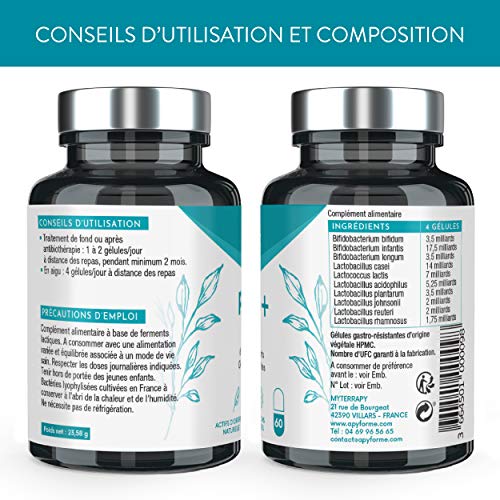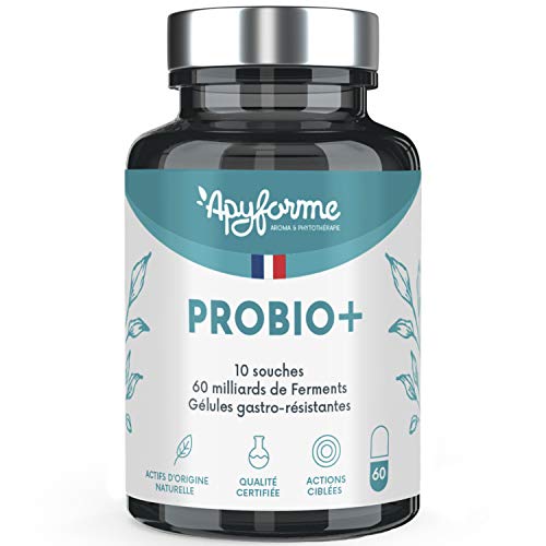 Probióticos Flora Intestinal - 60 Mil Millones UFC / 2 Geles - 10 Cepas - Complemento Alimentario 100% FRANCÉS - 60 Células Gastrorresistentes - Probio + Fabricado en Francia por ApyForme