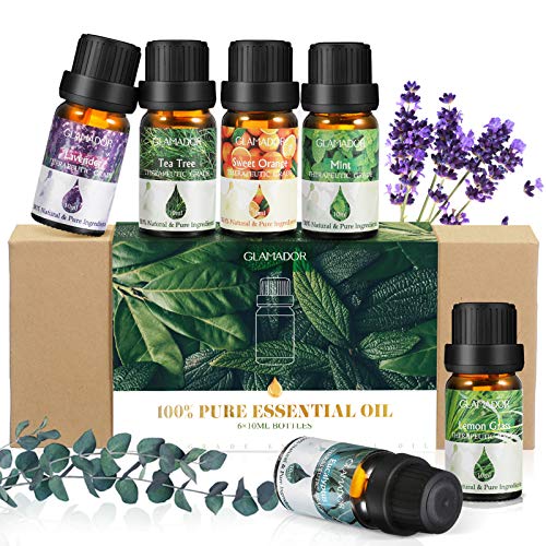 GLAMADOR Aceites Esenciales Naturales para Humidificador 6x10 ml-Aceites Esenciales 100% Puros para Difusor-Esencias Aromaticas, Ayuda a Dormir con Calma,Set de Regalo Perfecto para Amigos,Familiares