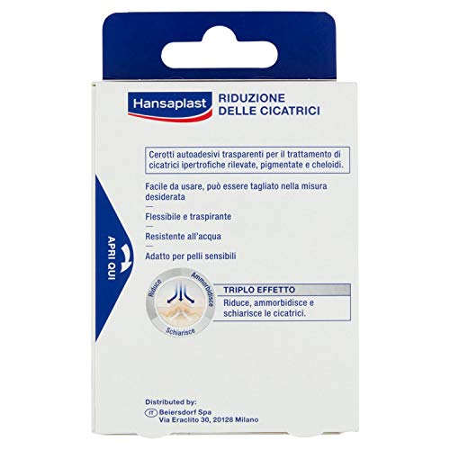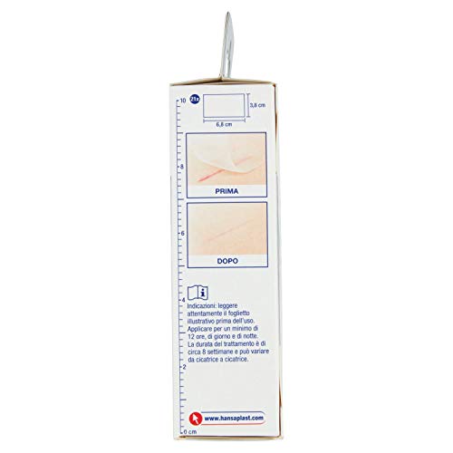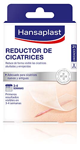 - Práctico envío – Hansaplast Parches reductores de cicatrices, apósitos para cuidar las cicatrices hipertróficas o queloides elevadas y descoloridas, 1 x 21 unidades (3,8 cm x 6,8 cm)