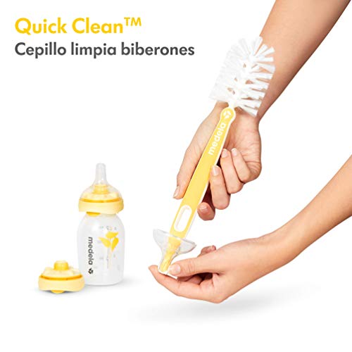 - Cepillo limpia biberones quick clean de Medela que ofrece una limpieza completa y suave, sin dejar residuos
