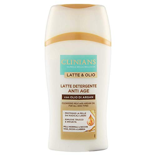CLINIANS LATTE & OLIO leche limpiadora antienvejecimiento para todos los tipos de piel, con Aceite de Argán, 200 mL