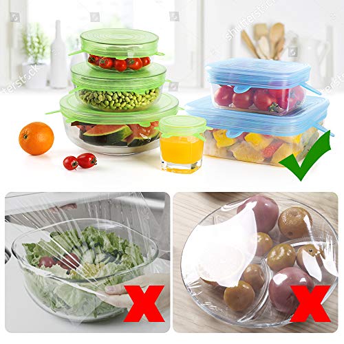 - ?Saludable y Seguro: La envoltura de alimentos de silicona está hecha de silicona de grado alimenticio, silicona de alta calidad, inofensiva, que cumple con el certificado de seguridad de la FDA y LFGB. Simplemente puede poner la tapa de silicona para cubrir su comida y calentarla en el horno o microondas.